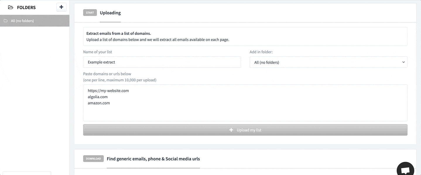 Grab emails, phones & socials in one click.- Upload a list of websites to extract emails
